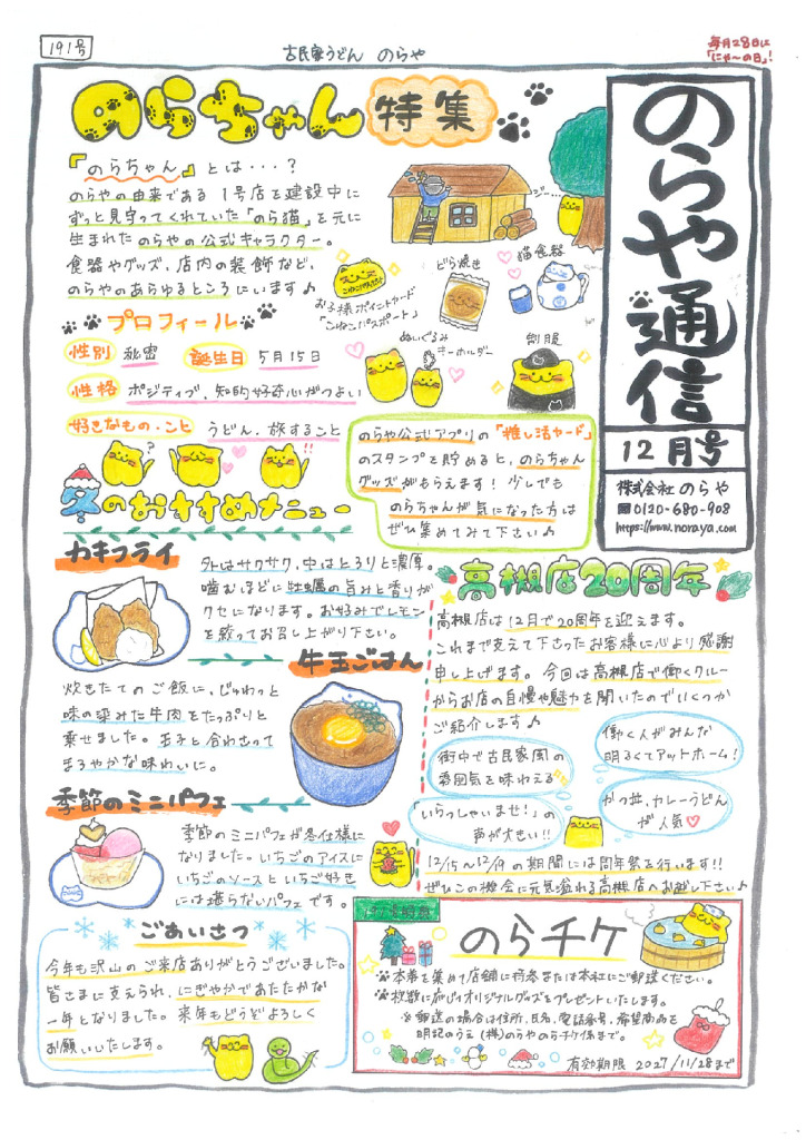 毎月発行されているのらやの情報をペーパーです。 美味しい情報がいっぱい! PDF記事公開中!